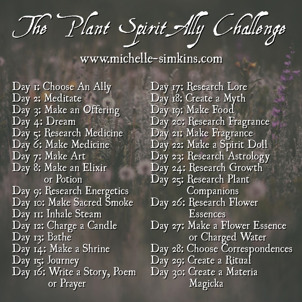 The Plant Spirit Ally Challenge focuses on getting to know a plant, tree, or shrub from magickal abilities to medicinal properties, from food to fragrance, in their habitat and among their natural companions. Click the image to download the free guide.